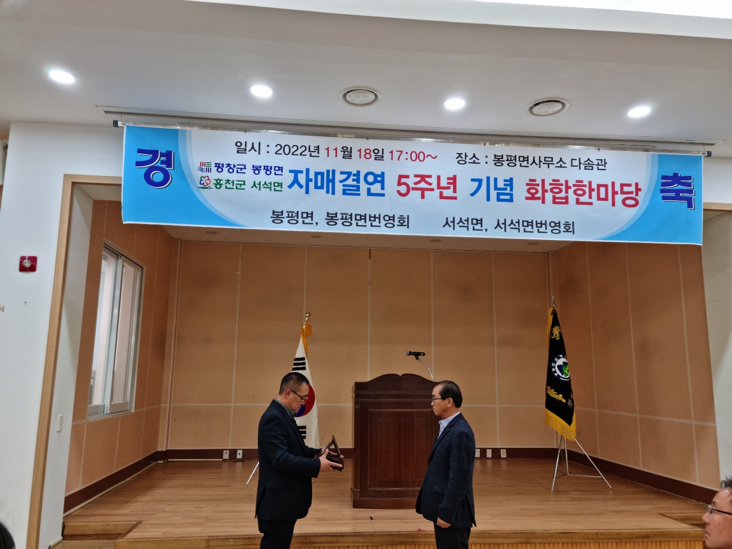 이날 행사는 봉평면 번영회장, 서석면 번영회장, 봉평면장, 서석면장을 비롯해 각급 기관사회단체장, 공무원 등 150여 명이 참석해 성황리에 진행되었다.