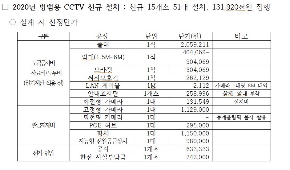 특히, 여성들이 거주하고 있는 여성안심보호 구역, 어린이 안전보호구역 등 안전취약계층에 대한 생활방범 cctv, 농산물 절도 등의 마을 cctv, 교통단속 cctv, 공영주차장 등 공공 장소의 cctv, 마을 입구, 외곽 등에 대한 cctv 확대가 시급한 것으로 보인다.