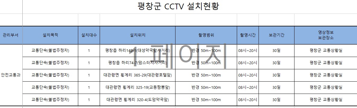 본지가 평창군에 관내 공영주차장 cctv설치 내역에 대한 정보를 받아보았는데 공영주차장 cctv가 턱없이 부족한 것으로 나타났다. 또한 공영주차장 cctv의 목적은 대부분 불법 주정차 단속을 위한 cctv였다. 실질적으로 공영주차장에 대한 cctv는 한 대도 없는 것으로 나타나 공영주차장에 주차를 하고 접촉사고 등을 겪었을 때 차량 내 블랙박스가 없으면 사건을 해결하기 어려울 것으로 보인다.