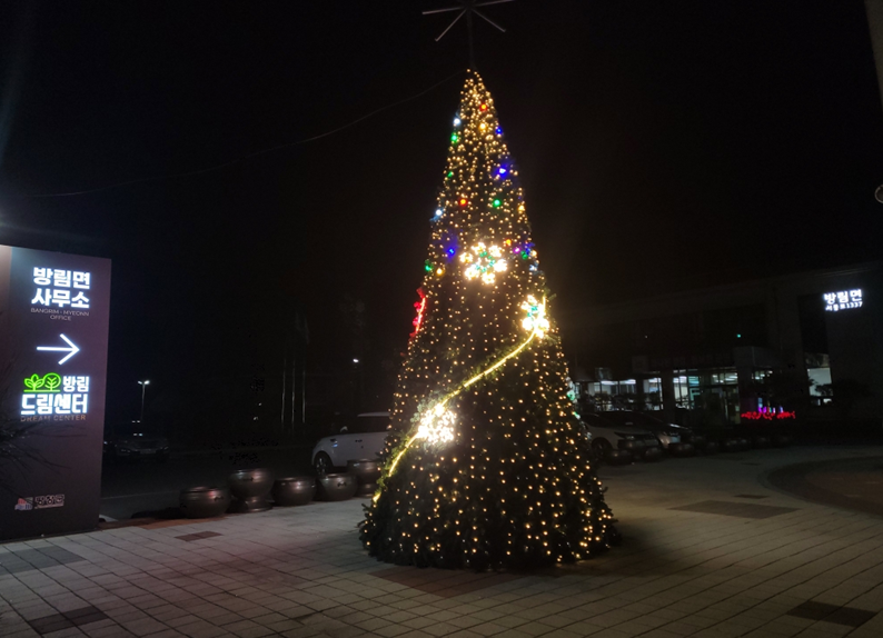 1일, 방림면(면장 김순란)은 면민 건강과 행복을 기원하며 면사무소 앞 성탄 트리를 점등하여 연말 이웃들에게 따스한 사랑의 메시지를 전함과 동시에 국도 42호선 주변의 볼거리를 제공했다.