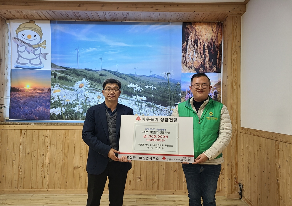 1일, 미탄면새마을지도자협의회(회장 이현승)는 희망2023나눔캠페인에 동참하여 이웃 돕기 성금 130만원을, 율치리 이장 이규호님이 성금 100만원을 미탄면사무소에 기탁했다.