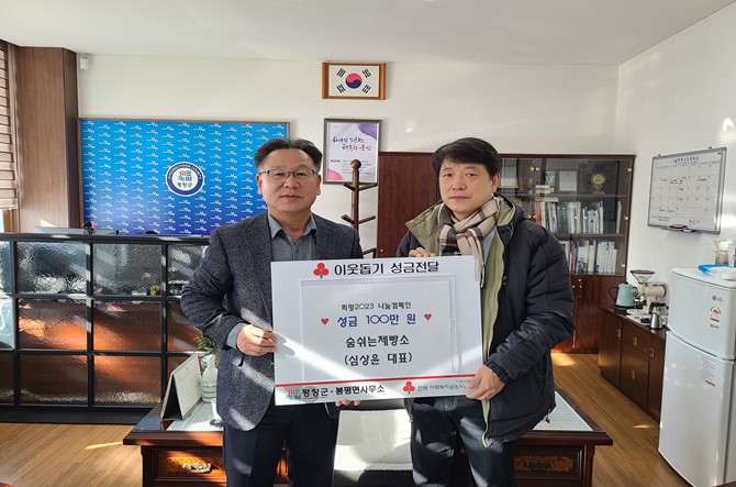 1일, 봉평면 소재 금강건설(이영부 대표)과에서 이웃돕기 성금 100만원을, 봉평면 소재 숨쉬는제빵소(심상윤 대표)에서 성금 100만원을 봉평면사무소에 기탁했다.