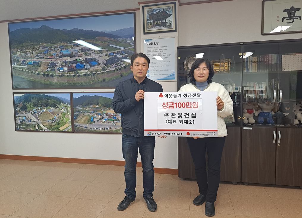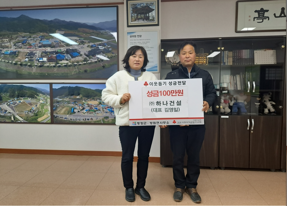 1일, 연말을 맞아 방림면사무소에 어려운 이웃을 위한 성금을 잇달아 기부하는 사랑 행렬이 이어졌다. 평창읍 소재 강산측량 지호동 대표가 이웃돕기 성금 50만원, 방림면 소재 ㈜하나건설 김영일 대표가 성금 100만원, ㈜한빛건설 최대순 대표가 성금 100만원을 방림면사무소에 기탁했다.