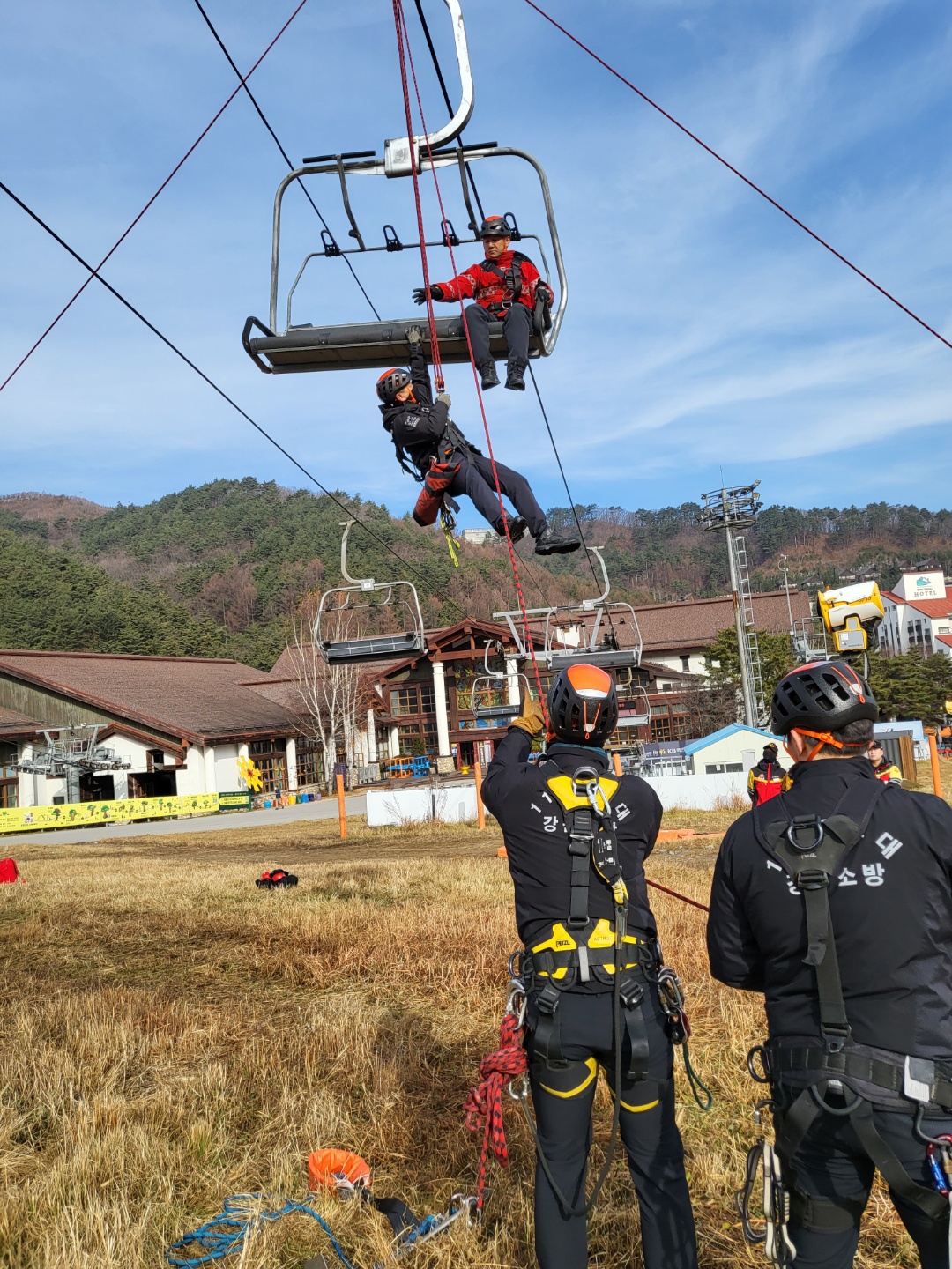 주요 내용은 ▲리프트 안전사고 발생에 대비한 인명구조 방법 숙달훈련 ▲리프트 케이블을 활용한 로프 등반 및 하강 ▲구조대원과 스키장 관계자 간 공조체계 구축 등이다.