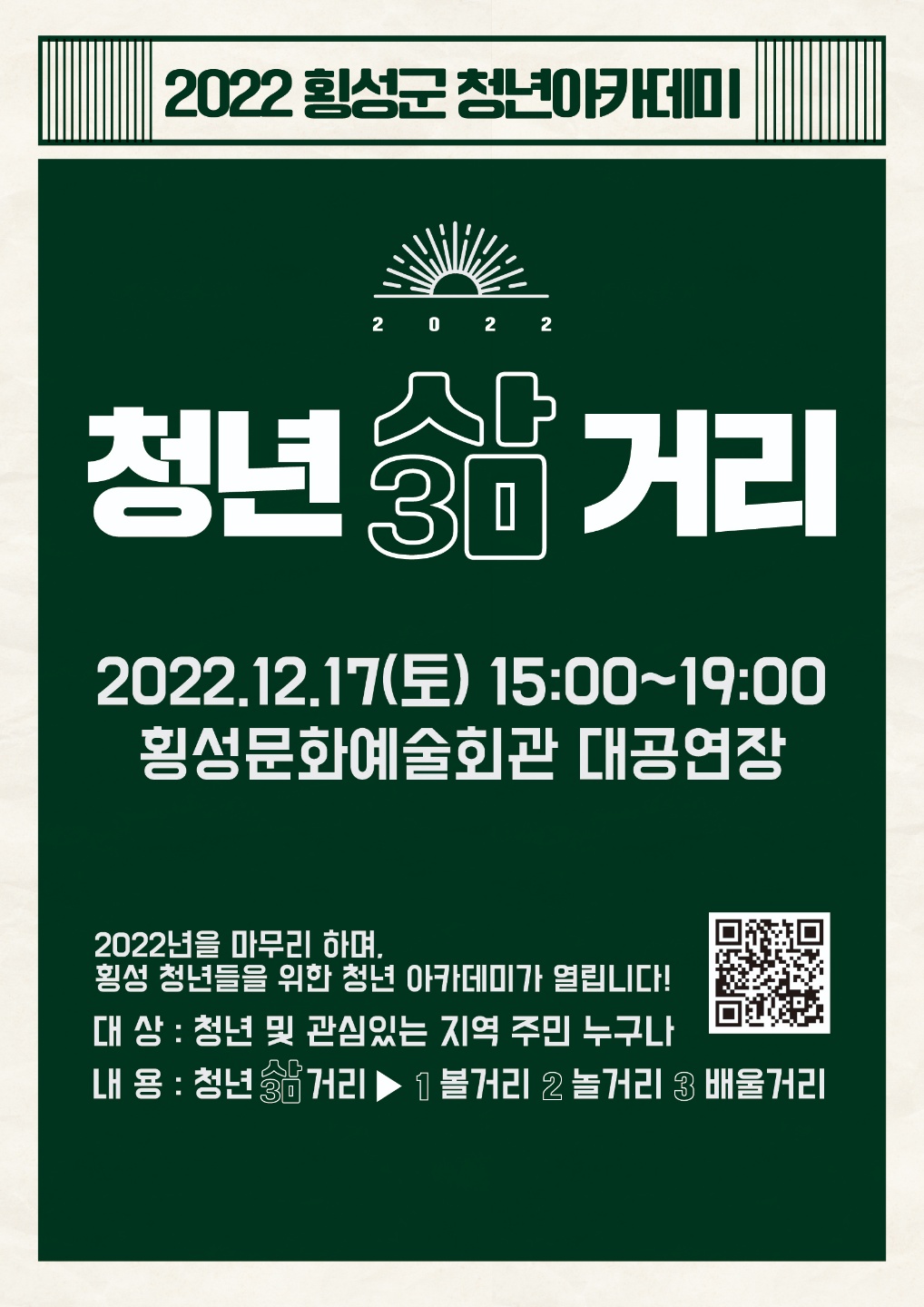 2022년 연말, 횡성 청년들을 위한 프로그램이 진행됩니다.