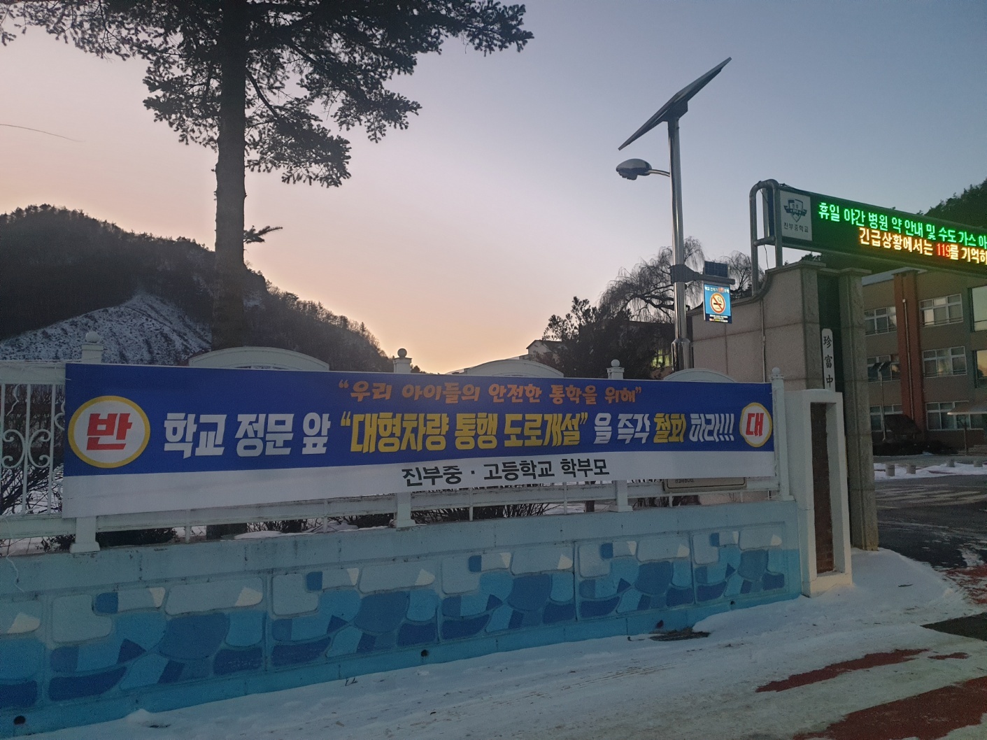 "진부중고등학교 정문 앞으로 장기미집행도로가 개설된다는 계획을 들었습니다. 아마도 이 도로가 개설되면 대형차량들이 지나 다닐테고 그러면 아이들의 교통사고에 대한 걱정이 늘 머리 속을 떠나지 않을 것입니다. 도로개설 계획이 결정나기 전에 우리 아이들의 안전한 통학을 지켜내야 합니다 !!!!! 지역사회와 학부모님들께서 소중한 우리 아이들을 안전하게 지켜주시길 간절하게 호소드리며, 많은 관심과 동참바랍니다.