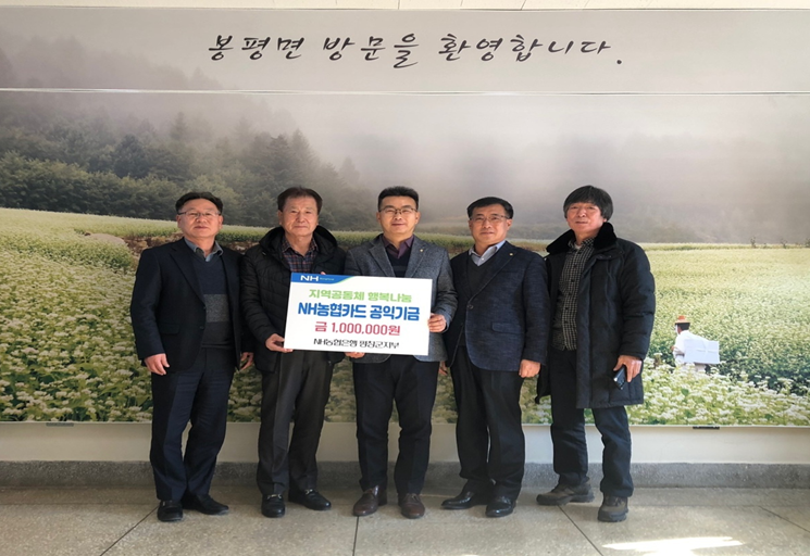 20일, NH농협은행 평창군지부(지부장 최창순)는 봉평면사무소에서 (사)대한노인회 평창군지부 봉평면분회(회장 박준홍)에‘지역공동체 행복나눔 공익기금*’100만 원을 기탁했다.