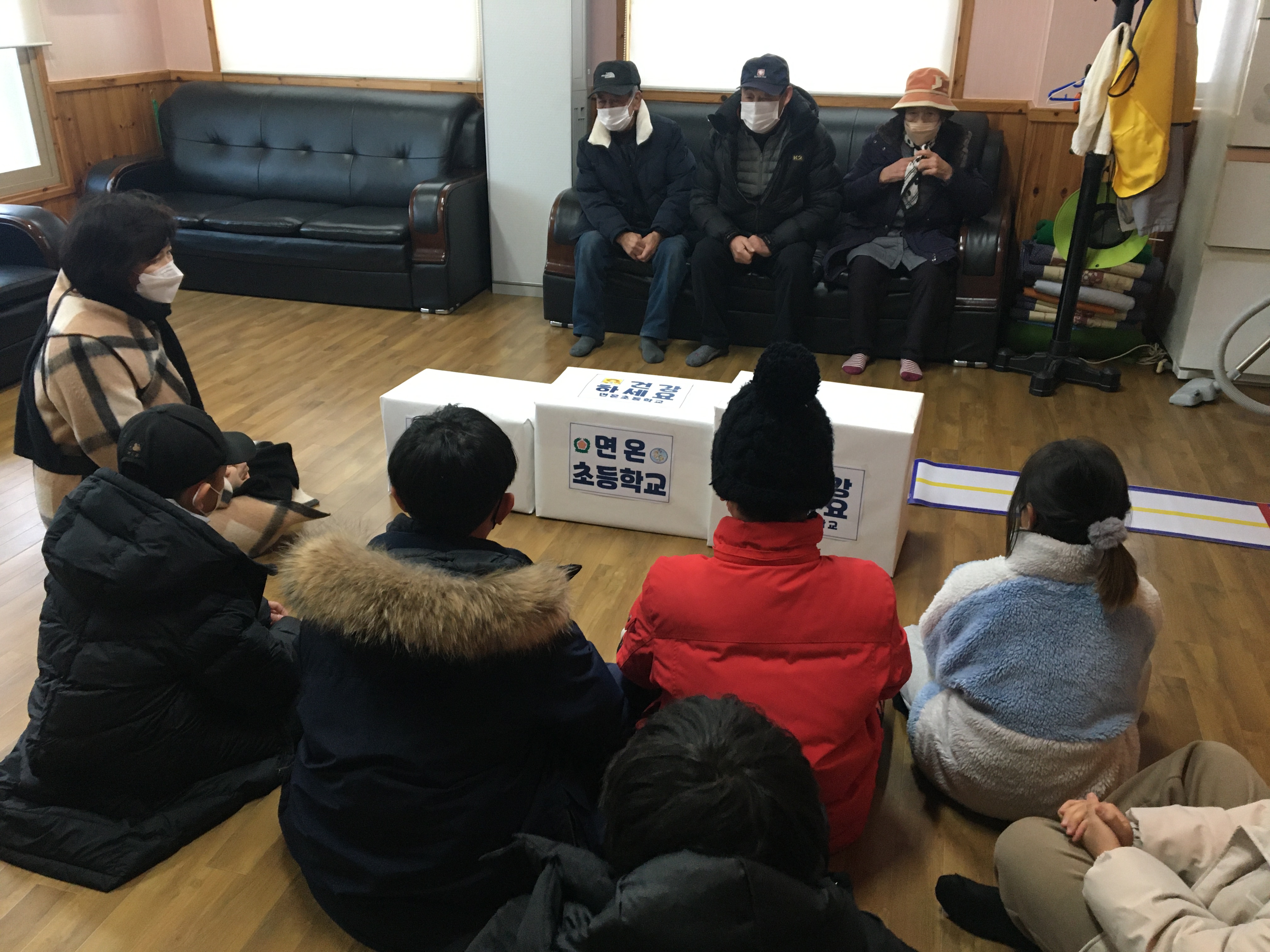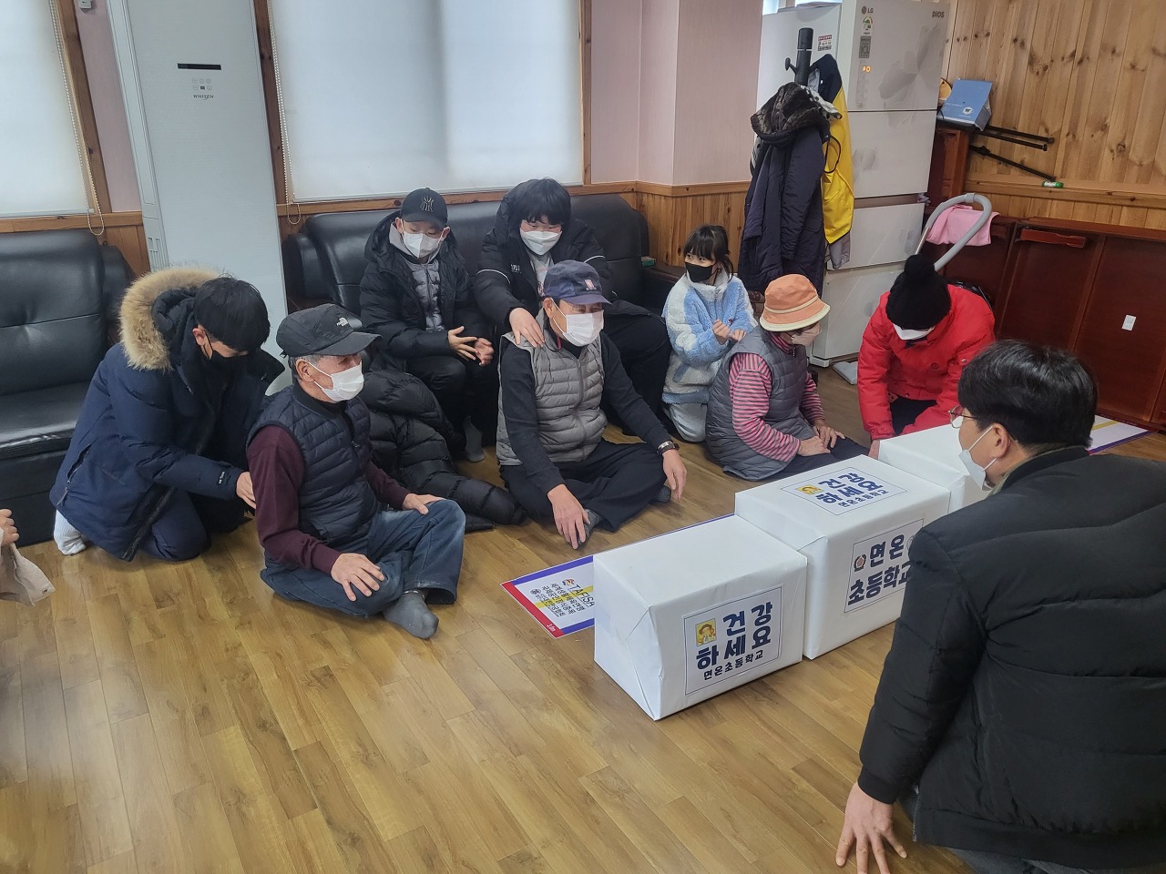 면온초등학교 학생자치회는 2022. 12. 22(목)에 면온지역 네 곳의 경로당을 방문하여 어르신들에게 차와 양말 등을 전달하고 어르신들과 함께 즐거운 시간을 가졌다.