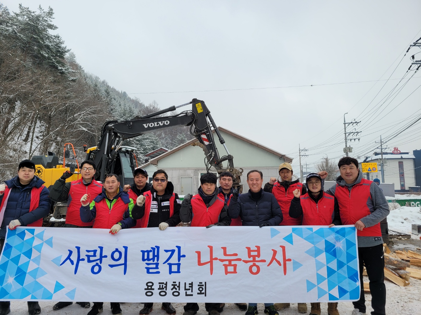 용평면 청년회가 지속적으로 지역을 위한 봉사활동을 펼치고 있어 주위에 감동을 안겨주고 있다. 용평면 청년회는 그동안 어려운 이웃에 쌀 기탁, 집수리 봉사활동, 취약계층을 위한 주거환경개선 봉사활동을 꾸준히 펼쳐왔다. 지난 7일과 8일에는 겨울철 사랑의 땔감 지원 봉사활동을 펼쳤다.