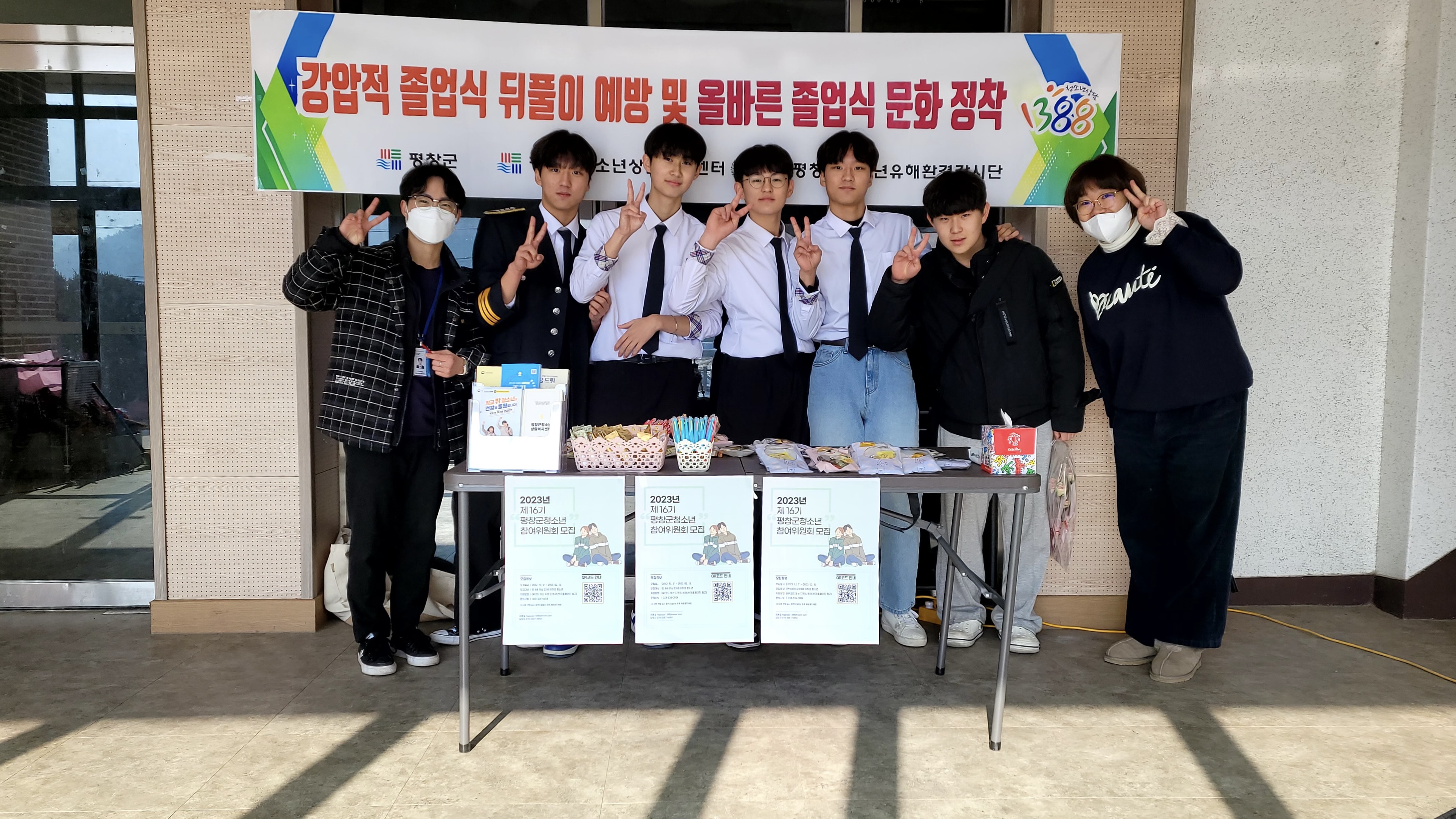 본격적인 졸업시즌을 맞아 평창군 관내 학생들의 올바른 졸업식 문화를 고취하고자 평창군청소년상담복지센터는 건전한 졸업문화 캠페인을 펼쳤다고 밝혔다. 주요 내용으로는 졸업 및 방학식을 참석하는 청소년 및 학부모에게 청소년유해환경과 올바른 졸업문화에 대한 홍보책자 및 물품 배포 였다.
