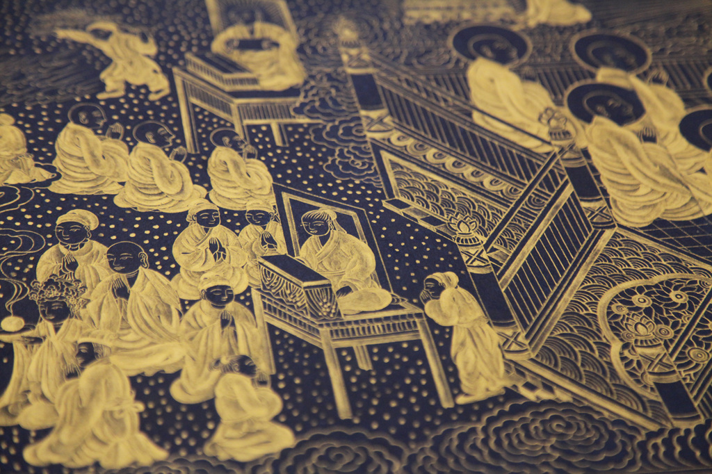 혜화 이순자 작가는 2002년 5월 1일부터 현재까지 약 20년 동안 폭 33cm 총 길이 800m 이상의 고려장지 위에 순금으로 묘법연화경을 필사하였으며 이 작품은 1세트에 7권, 총 8세트로 구성되어 있고 총 글자 수만도 56만자에 달하는 역작(力作)이다. 특히 이 작품은 성파 종정예하스님께서 30년 전에 재현한 고려감지로 작업한 작품이다. 묘법연화경을 금으로 쓰고 그려서 일반 대중들에게 작품으로 소개하여 친근하게 불교가 전달되고 삶에 정신적 위로와 격려로 안정감을 느낄 수 있도록 했다.