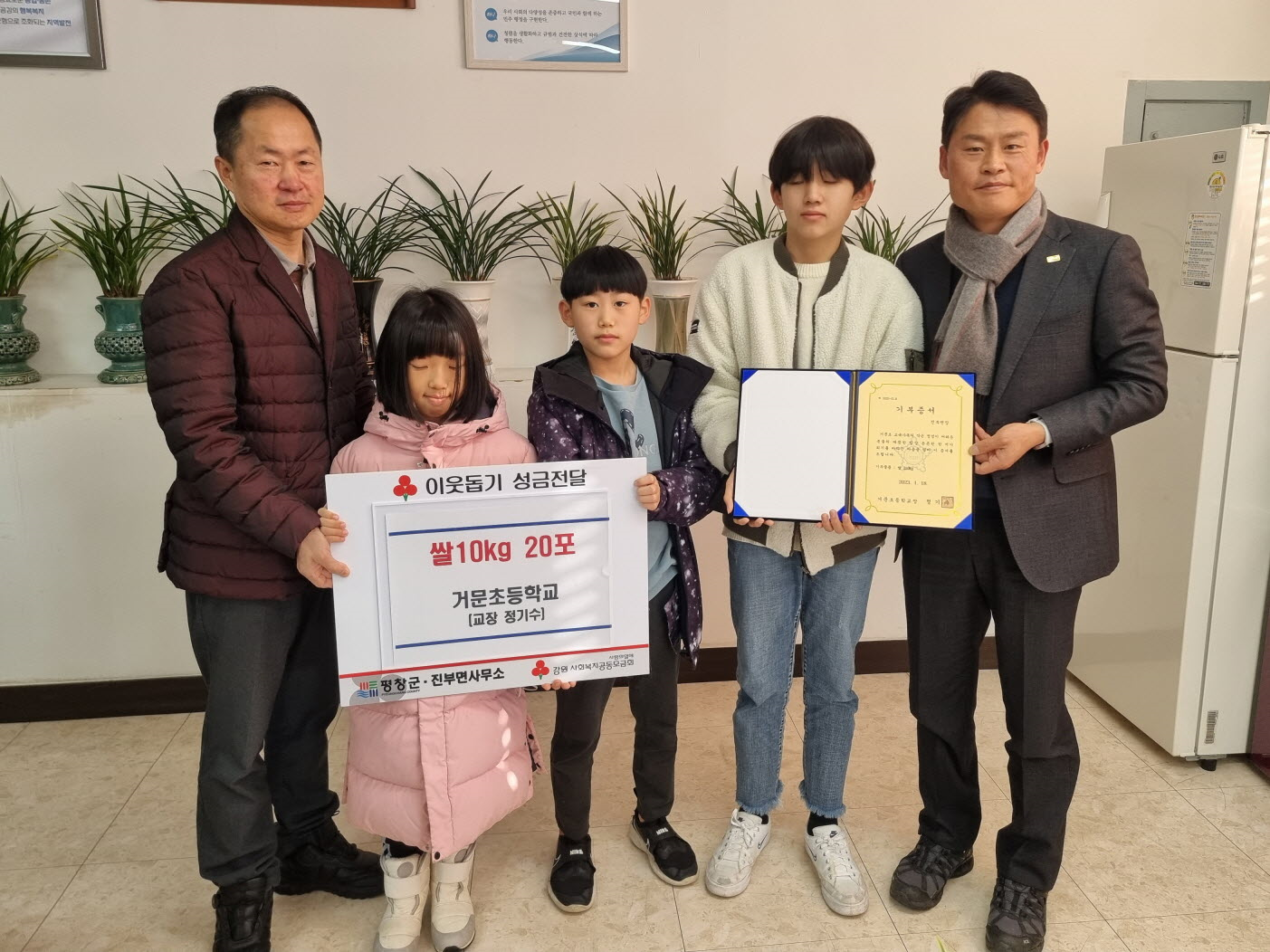 진부면 거문초등학교 학생들, 어려운 이웃 위한 쌀 200kg 기탁