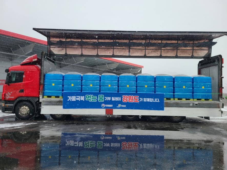 이번 먹는 물 기부 릴레이는 남부지역의 심각한 가뭄 피해에 대처하기 위하여 지난 12월 행정안전부와 17개 시‧도가 긴급회의를 갖고 결정한 사안으로 강원도는 지난 16일 서울시를 시작으로 3번째로 참여하게 된다.