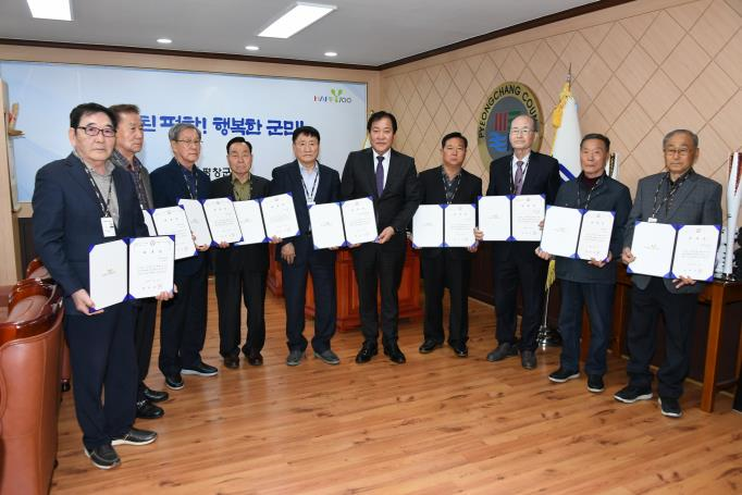 지난 37일, 평창군 가족복지과(경로복지)는 군수 집무실에서 심재국 군수와 김대성 대한노인회 평창군지회장 및 8개 읍·면 분회장 등이 참석한 가운데, 2023년 평창군 지역봉사지도원 위촉식을 개최하였다.