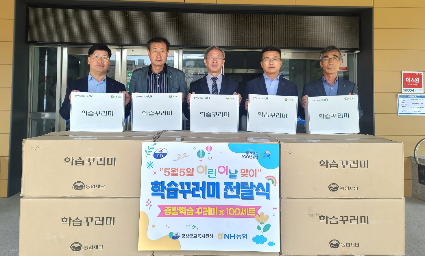 농협평창군지부장·평창군관내 농축협 조합장은 어린이날을 맞이해서 지난 5.02.(화) 평창군 교육지원청을 방문하여 700만원상당의 『사랑의 학습꾸러미』를 전달했다.