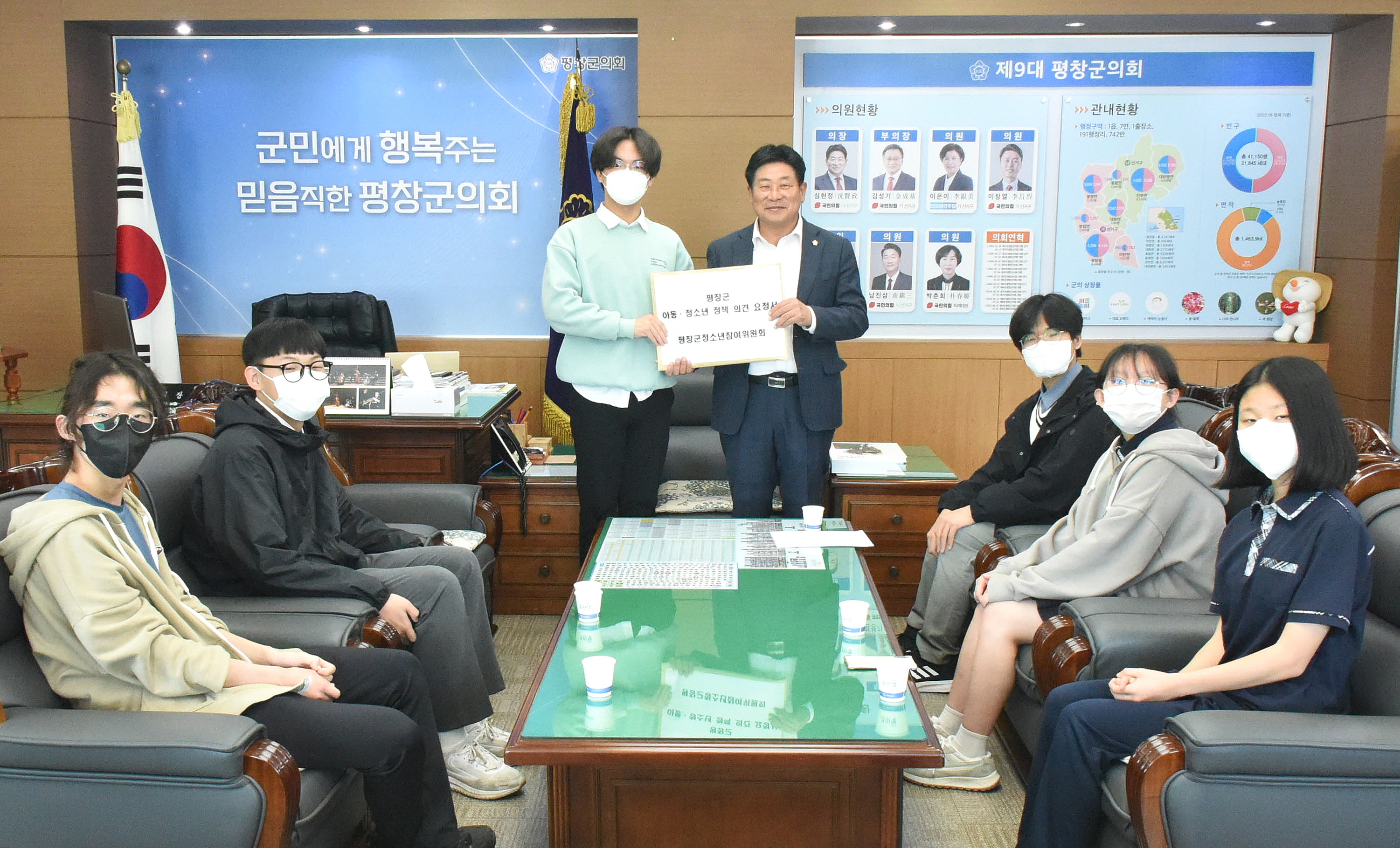 평창군 16기 청소년참여위원회는 28일 평창군의회를 방문하여 아동·청소년 정책 의견 요구서 전달식을 가졌다.