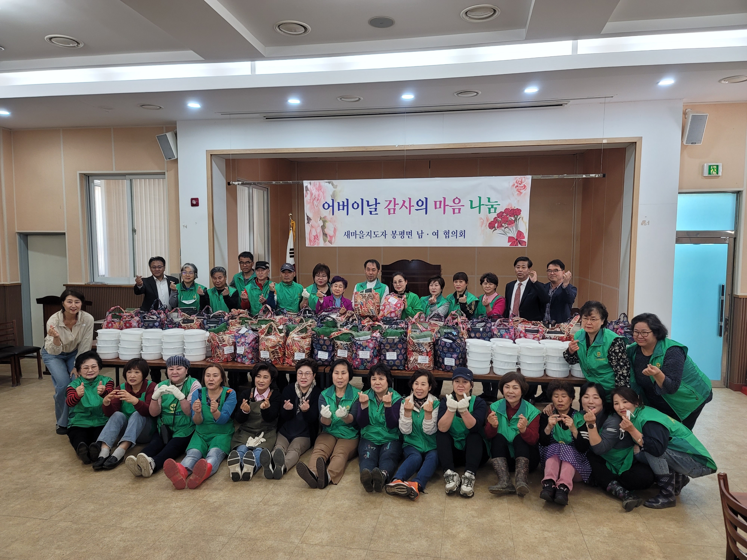 봉평면 새마을남녀협의회는 식사를 거를 우려가 있는 어르신들에게 식사 봉사를 매주 화요일 진행하고 있으며, 매년 취약계층에 계절 김치와 꾸러미 나눔, 주거개선활동 등 사랑 나눔을 꾸준히 펼치고 있다.