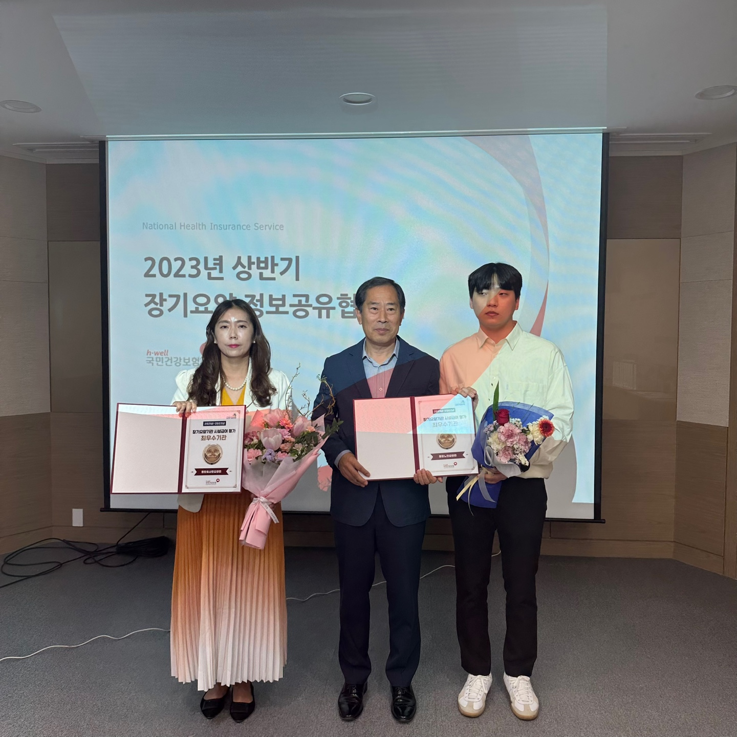 국민건강보험공단 평창영월지사(김대경)‘23.5.12.일 지사 대회의실에서 ‘21년 장기요양기관 시설급여 평가결과 최우수기관과 ’23청구 그린기관으로 선정된 기관에 대해 노고을 격려하고 최우수기관 표지물을 수여하였다.
