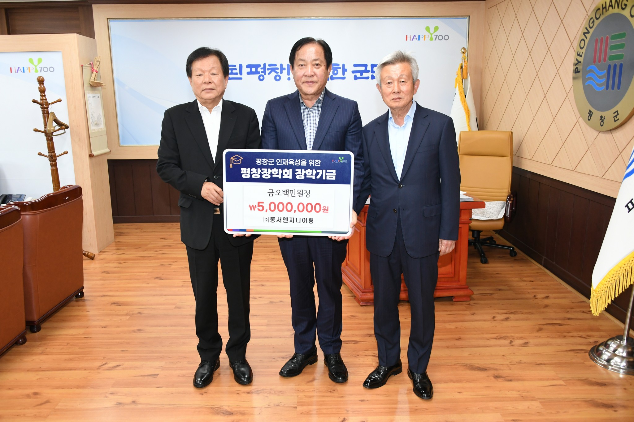 ㈜동서엔지니어링(대표 이익상)은 16일 평창군청을 방문하여 평창장학회에 장학금 5백만 원을 기탁했다.