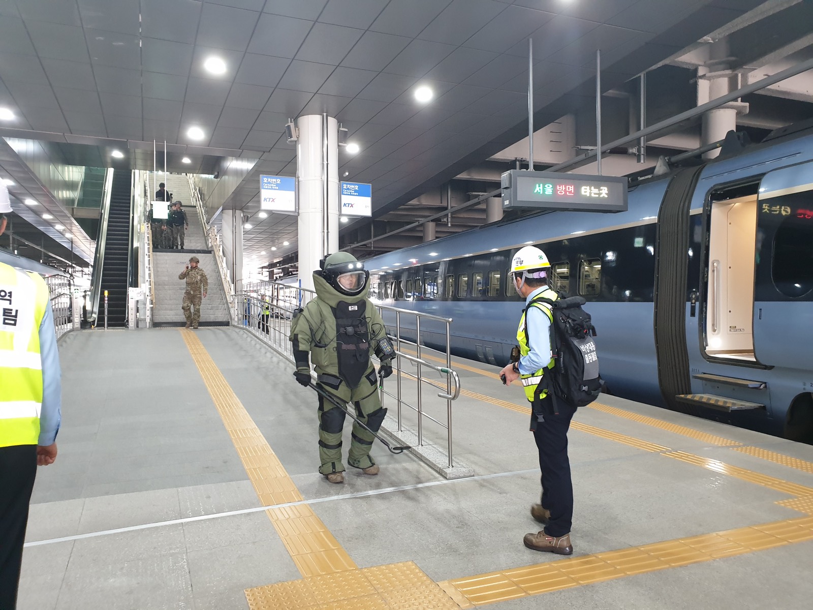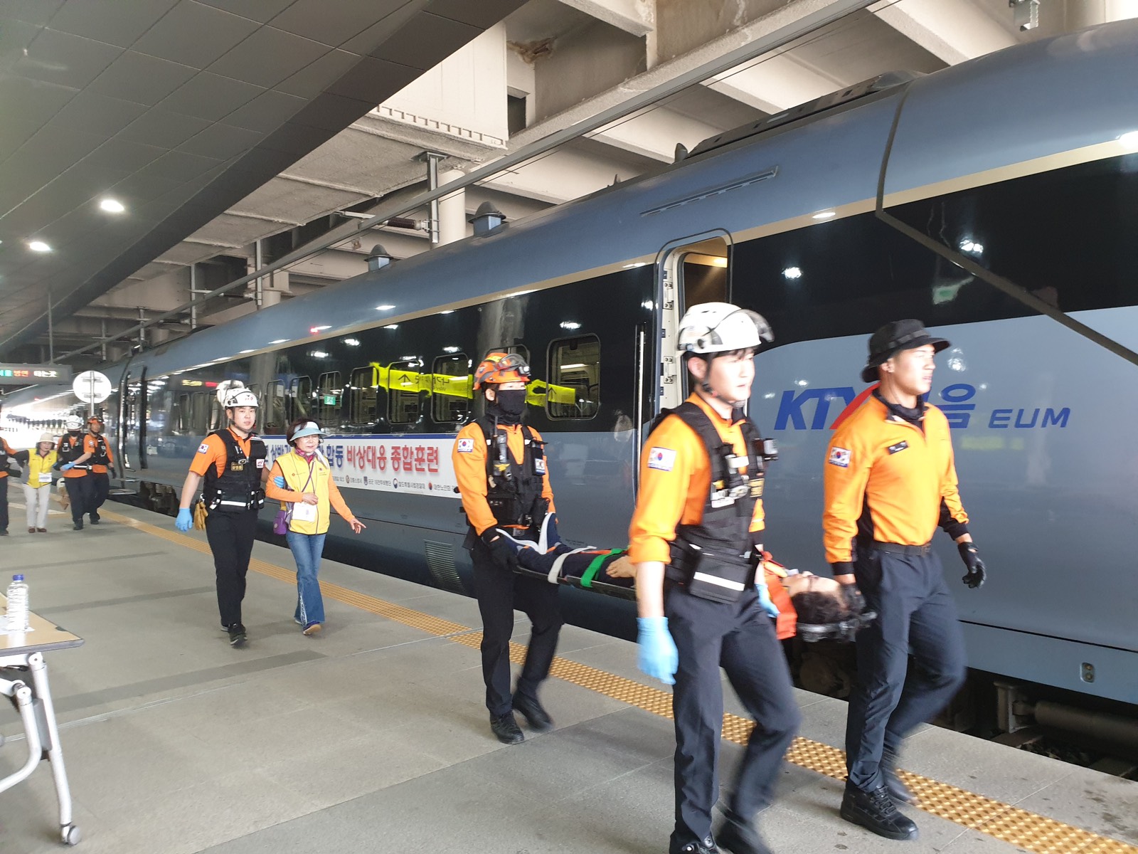 또한 고속열차를 강릉역에 유치하여 실제 훈련으로 시행하였으며, 초동조치와 화재진압 및 부상자 구호 폭발물 해체 화생방 의심물질 판독 탈선차량 복구 및 철도 시설물 복구 순서로 진행하였다.