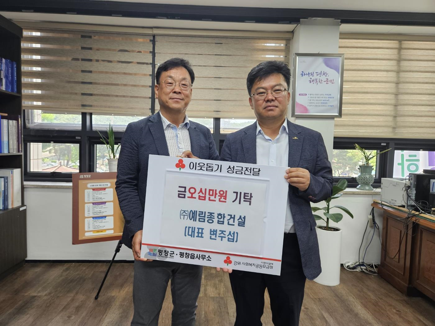 평창읍 (주)예림종합건설, 이웃돕기 성금 기탁