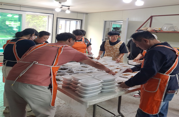 어제(5.31.), 진부면새마을부녀회(회장 박숙희) 회원 10여 명은 하진부11리 경로당에서 장수식당을 운영하여 어르신 35명에 점심식사를 대접했다.