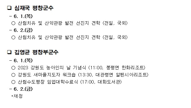 오늘(6.1.) 13:30, 강원도새마을회(회장 박형배)는 알페시아 리조트에서 강원도 새마을지도자 250여 명이 참석한 가운데, ‘2023년 강원도 새마을지도자 워크숍’을 개최할 예정이다. 이번 워크숍에서는 강원청년새마을연합회 창립 대회, 종합평가 시상 및 유공자 표창 등을 진행될 예정이다.