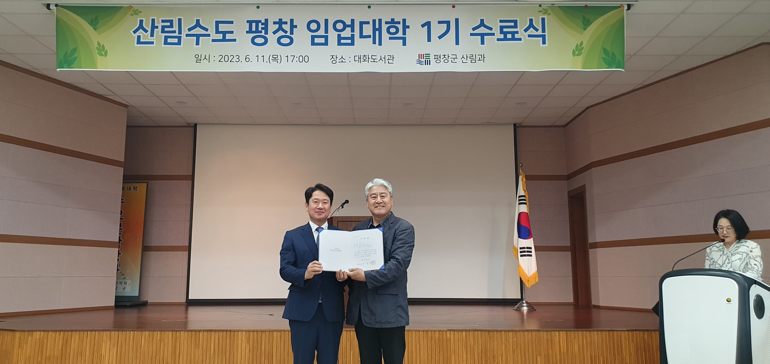 평창군은 지난 3월 9일 개강하여 운영한 제1기 산림수도 평창 임업대학 교육과정 수료식을 6월 1일 17시 대화도서관에서 개최했다.