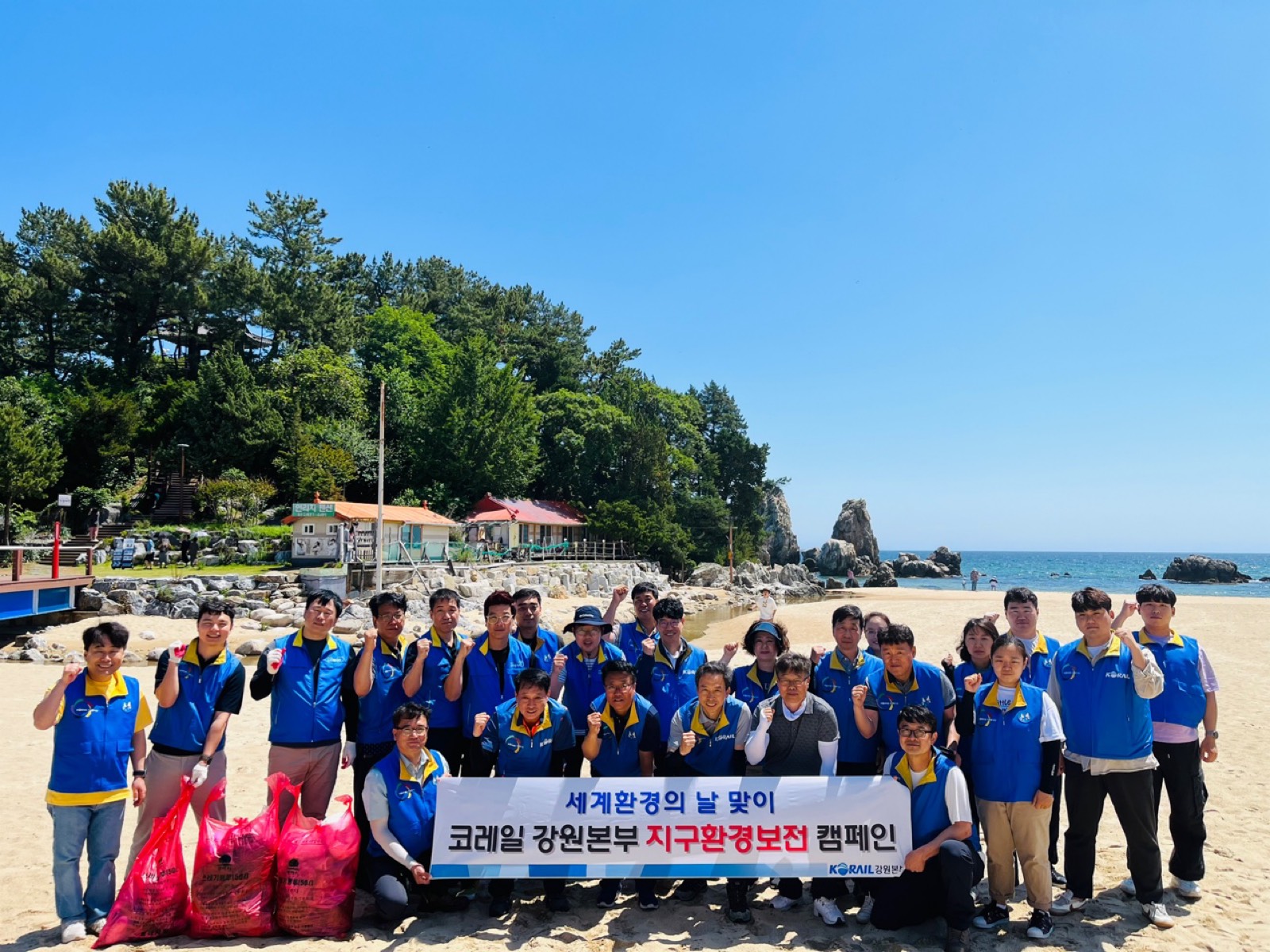 한국철도 강원본부는 9일(금) ESG경영 실천을 위해 동해시 추암해변 일대에서 ‘플로깅 캠페인’을 진행했다.
