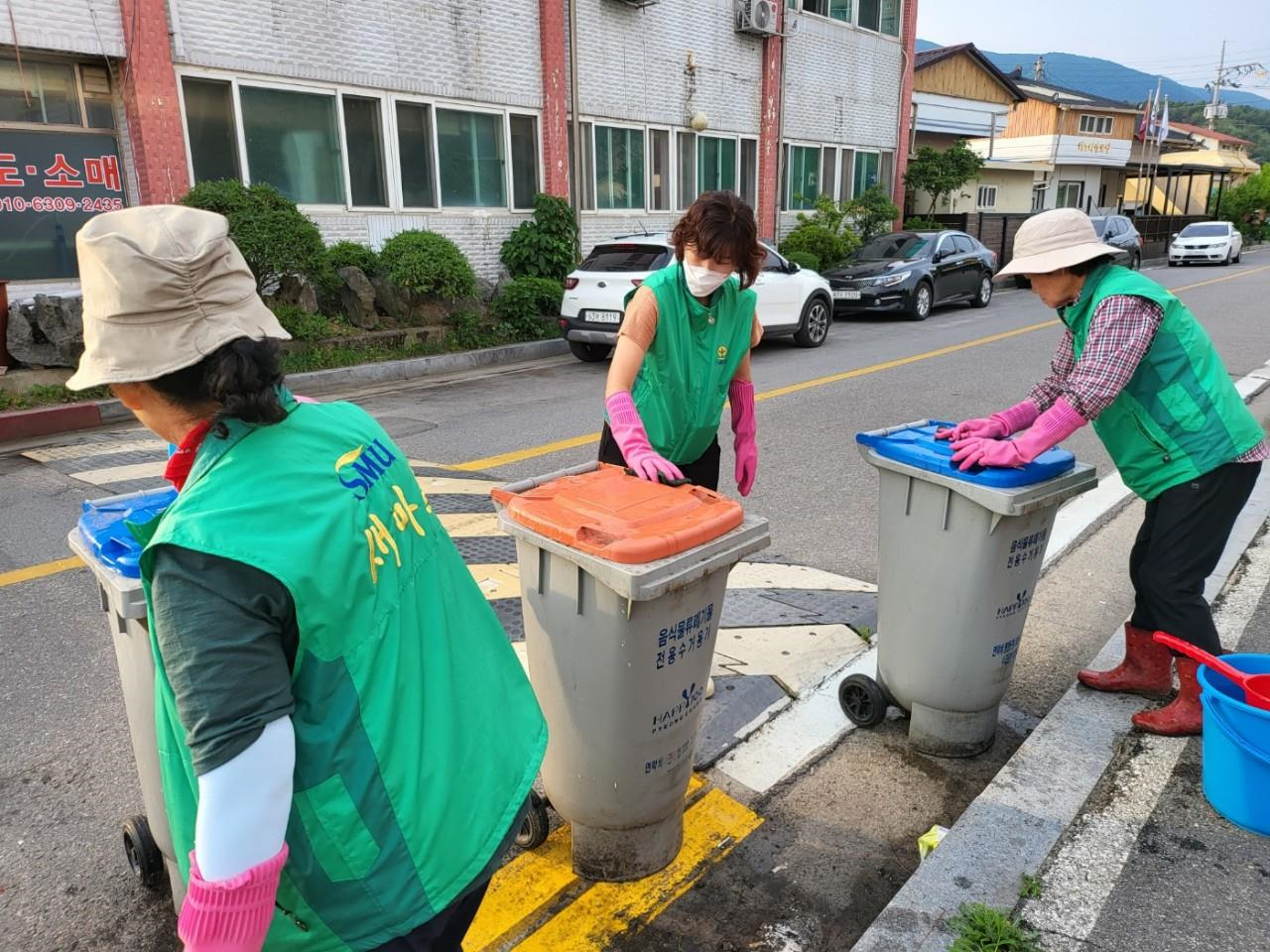 지난(6.11.), 평창읍새마을부녀회(회장 원금숙)는 쾌적한 주거환경 개선을 위한 관내 음식물 쓰레기통을 세척하여 악취 발생 및 해충 서식을 방지했다.