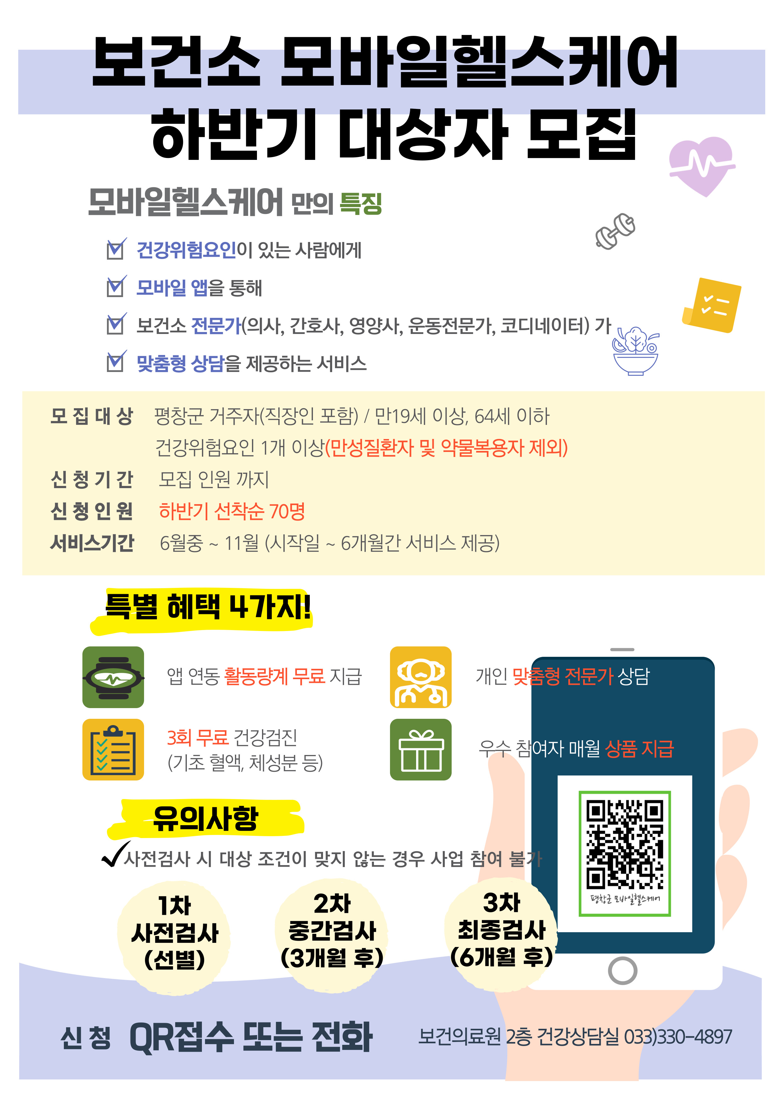 평창군보건의료원, 보건소 모바일헬스케어사업하반기 대상자 모집