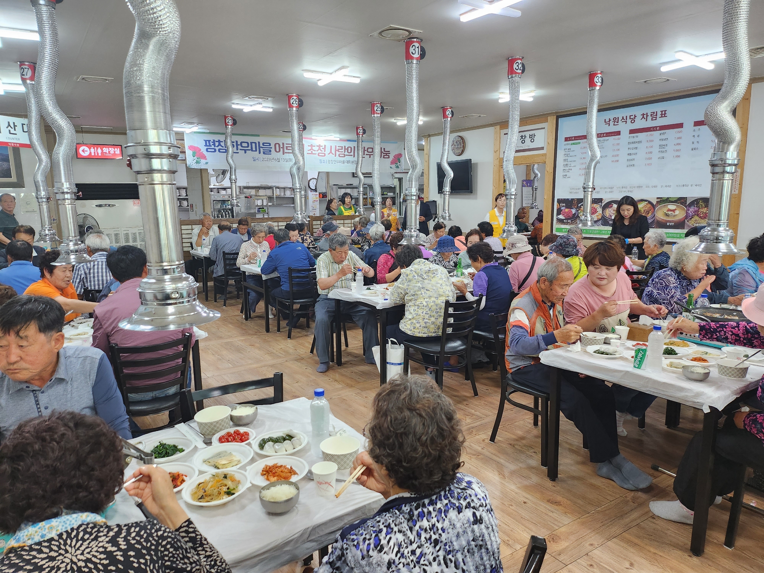 이날 평창한우마을 대화점에서는 불고기과 떡, 과일 등 음식을 대접하고 소정의 선물도 전달하며 어르신들의 건강을 기원하였다.