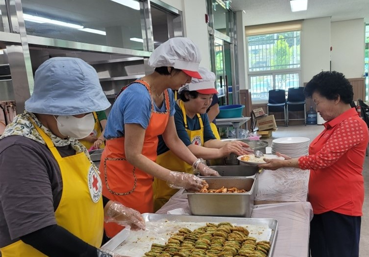 어제(6.12), 용평면적십자봉사회(회장 김동숙)는 금송회관 1층에서 장수식당을 운영하여 관내 어르신 100여 명에게 점심식사를 대접하였으며, 거동이 불편한 어르신들에게는 도시락을 만들어 직접 전달했다.