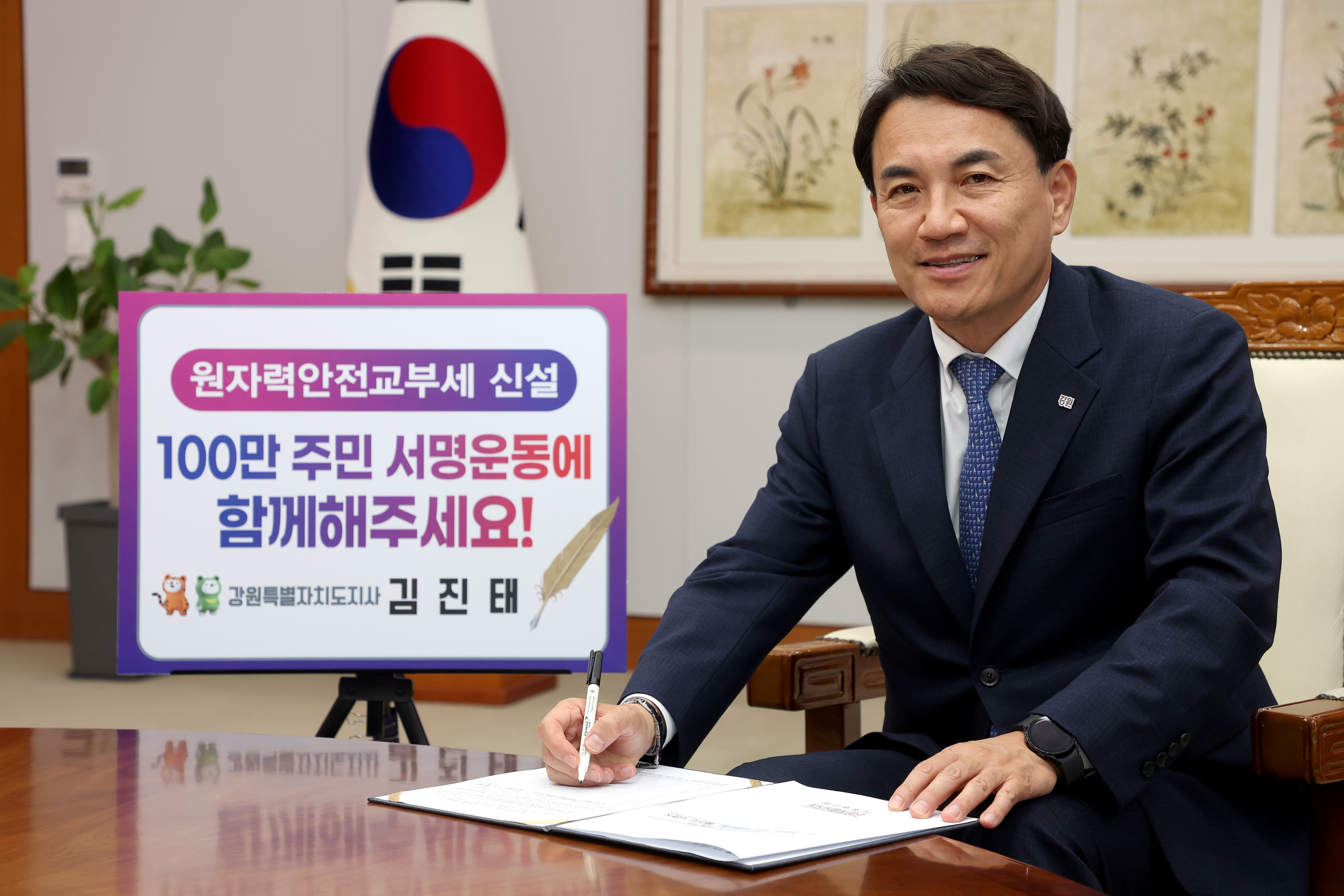 김진태 강원특별자치도지사는 “원전 사고로부터 도민의 생명과 재산을 보호하기 위한 원자력안전교부세 신설을 위해 많은 관심과 성원이 필요하다. 법안의 신속한 통과를 위해 도민 여러분, 국민 여러분께서 서명운동에 적극 동참해 주시기 부탁드린다”며 서명 운동 동참을 격려하였다.