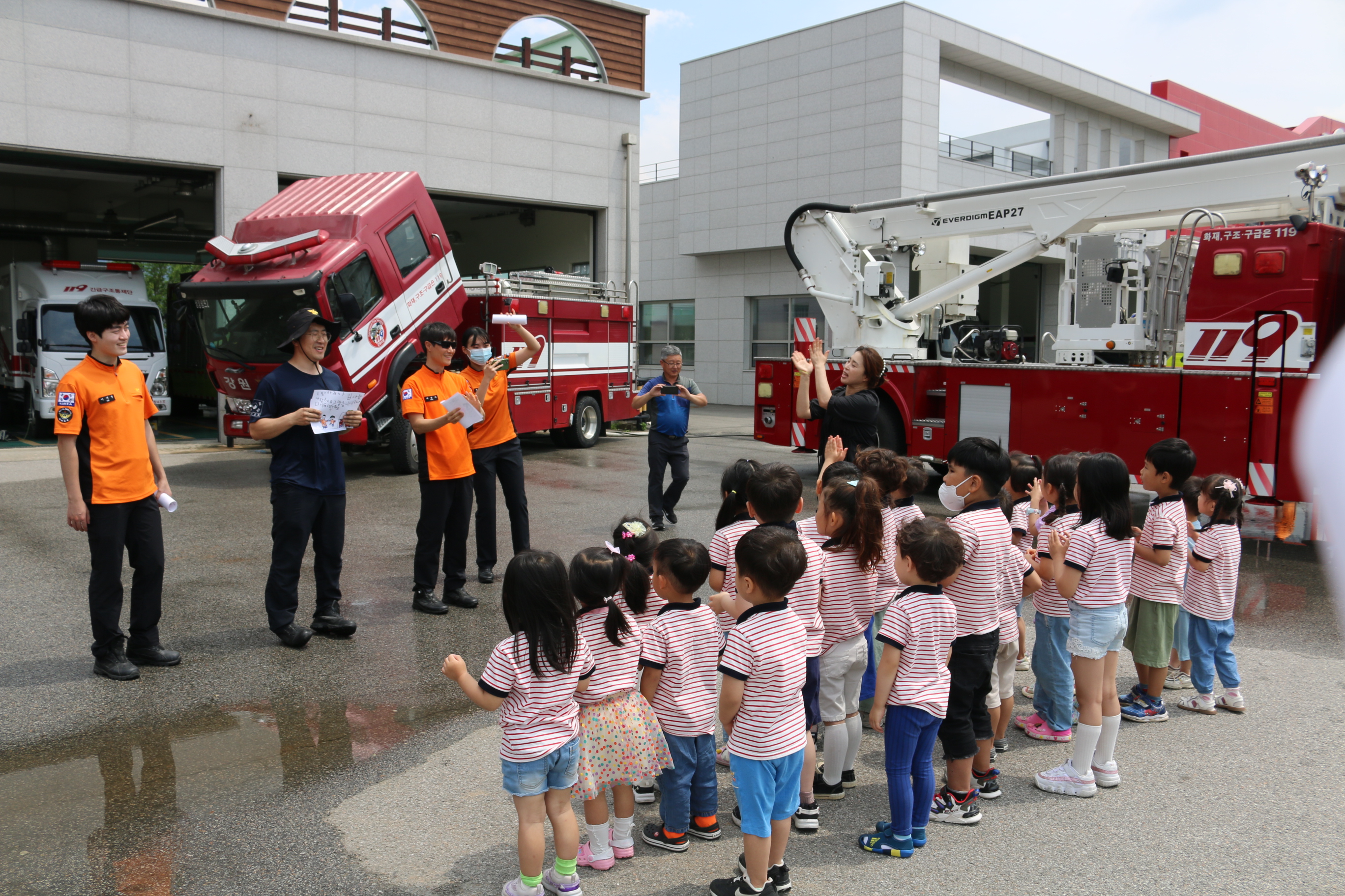교육 내용은 지진 강도별 대비 탈출 체험 연기 발생 장치를 이용한 비상 대피 방법 소방 안전교육 홍보영상 시청 소방차량 소개 등이다.