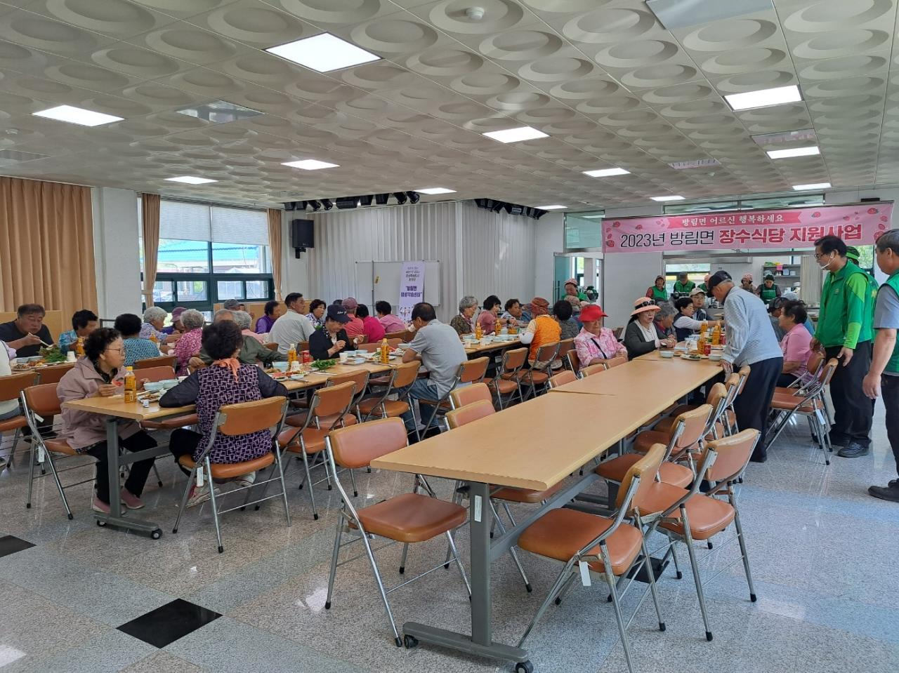 지난(6.16.) 08:00, 방림면새마을지도자남녀협의회(회장 경민수·이영희)는 방림복지회관에서 장수식당을 운영하여 관내 어르신 약 80분께 점심식사를 대접하였음.