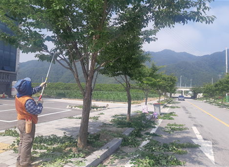 평창읍 정화건설, 가로수 환경정비 가지치기 봉사 실시