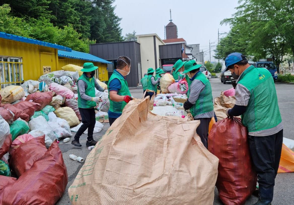 용평면새마을지도자남여협의회, 폐농약병 분리수거 봉사활동 실시