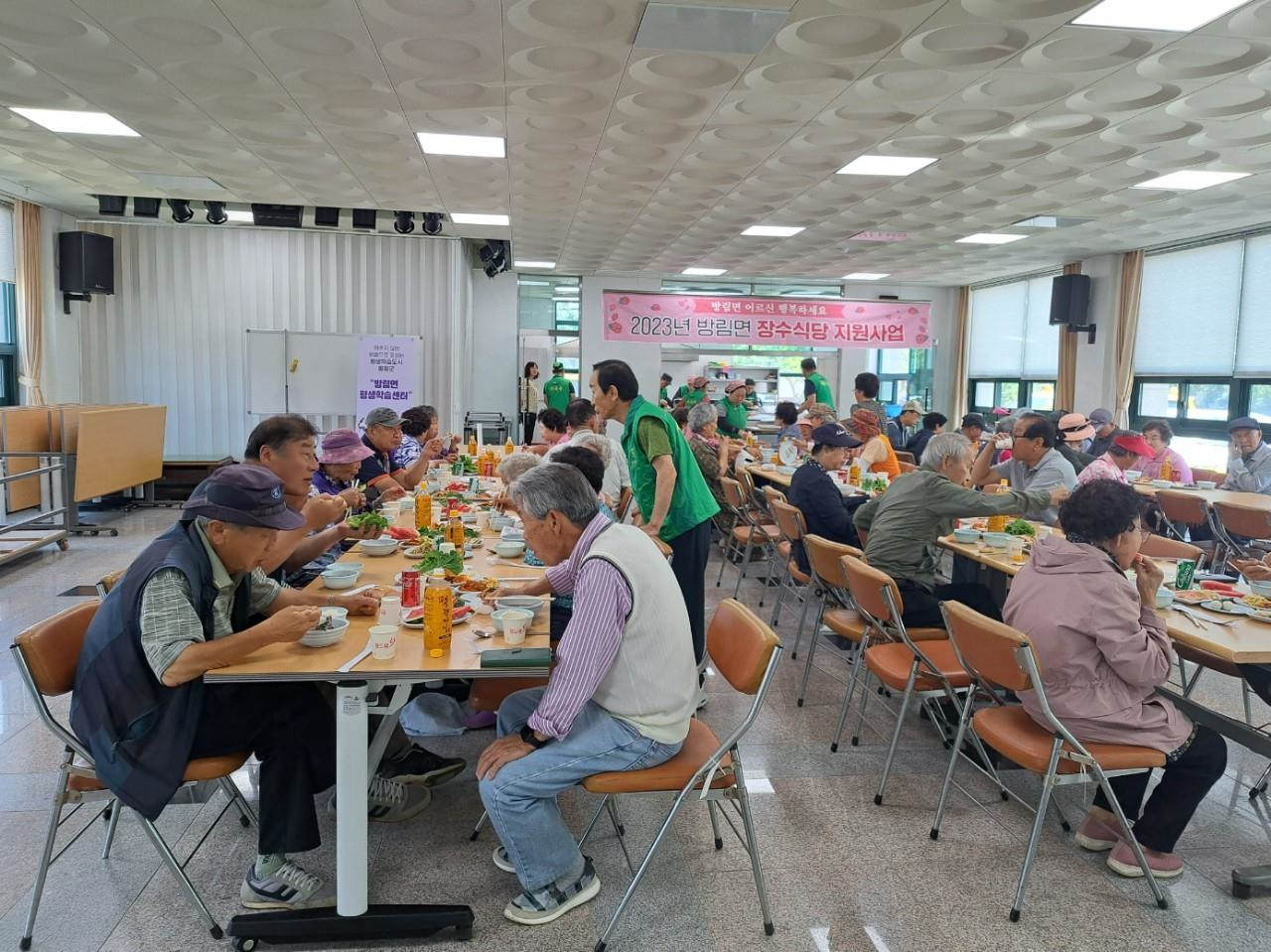 지난(6.16.) 08:00, 방림면새마을지도자남녀협의회(회장 경민수·이영희)는 방림복지회관에서 장수식당을 운영하여 관내 어르신 약 80분께 점심식사를 대접하였음.
