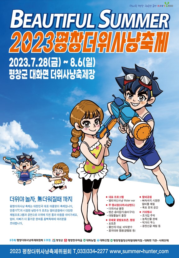23년도에도 평창 더위사냥축제위원회(위원장 최돈중)는 관광객과 주민들이 편안하게 휴가를 즐기고 좋은 추억을 안고 돌아갈 수 있도록 최선의 준비를 하고 있다고 밝혔다.