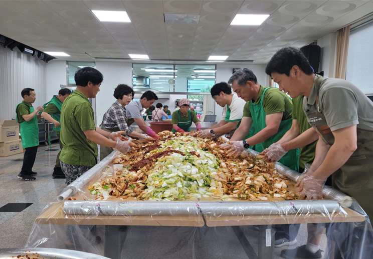 (7.10.) 08:00, 미탄면새마을지도자남녀협의회(회장 이현승)은 미탄면 복지회관에서 회원 20명이 참여한 가운데, 사랑의 계절김치 나눔행사를 진행하여 밑반찬 및 계절김치를 만들어 지역 취약계층 가구에 전달했다.