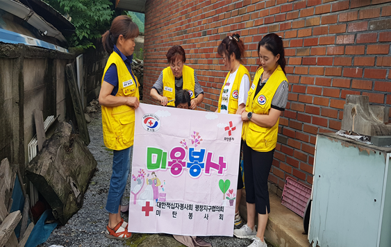 어제(7.13.), 미탄면적십자봉사회(회장 이행자)는 거동이 불편한 취약계층 10가구를 방문하여 미용봉사 및 희망풍차(생활용품 나눔)를 전달했다.