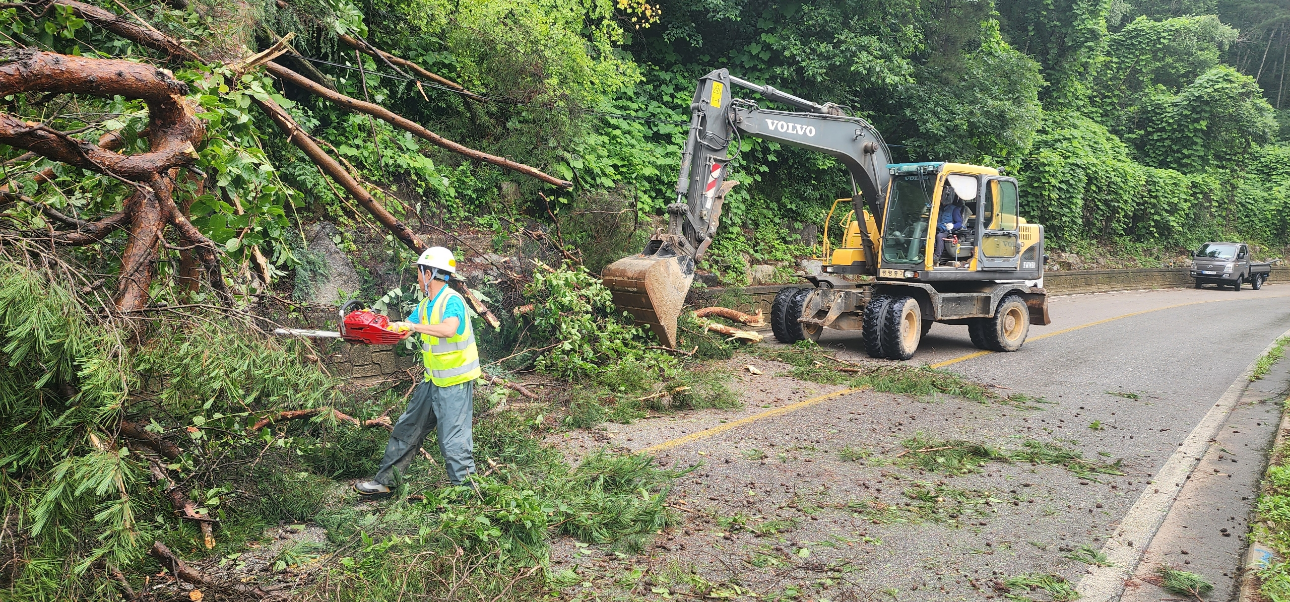 (7.12.) 06:40, 봉평면 유포리 솔섬오토캠핑장 인근 도로에 11일 밤까지 쏟아진 집중호우로 쓰러진 나무가 도로를 막아 주민들 통행에 불편함을 겪었다. 상황을 확인한 이장의 신고로 면사무소 장비와 건설과 도로보수원이 출동하여 신속하게 지장물을 제거하여 피해를 최소화 했다.
