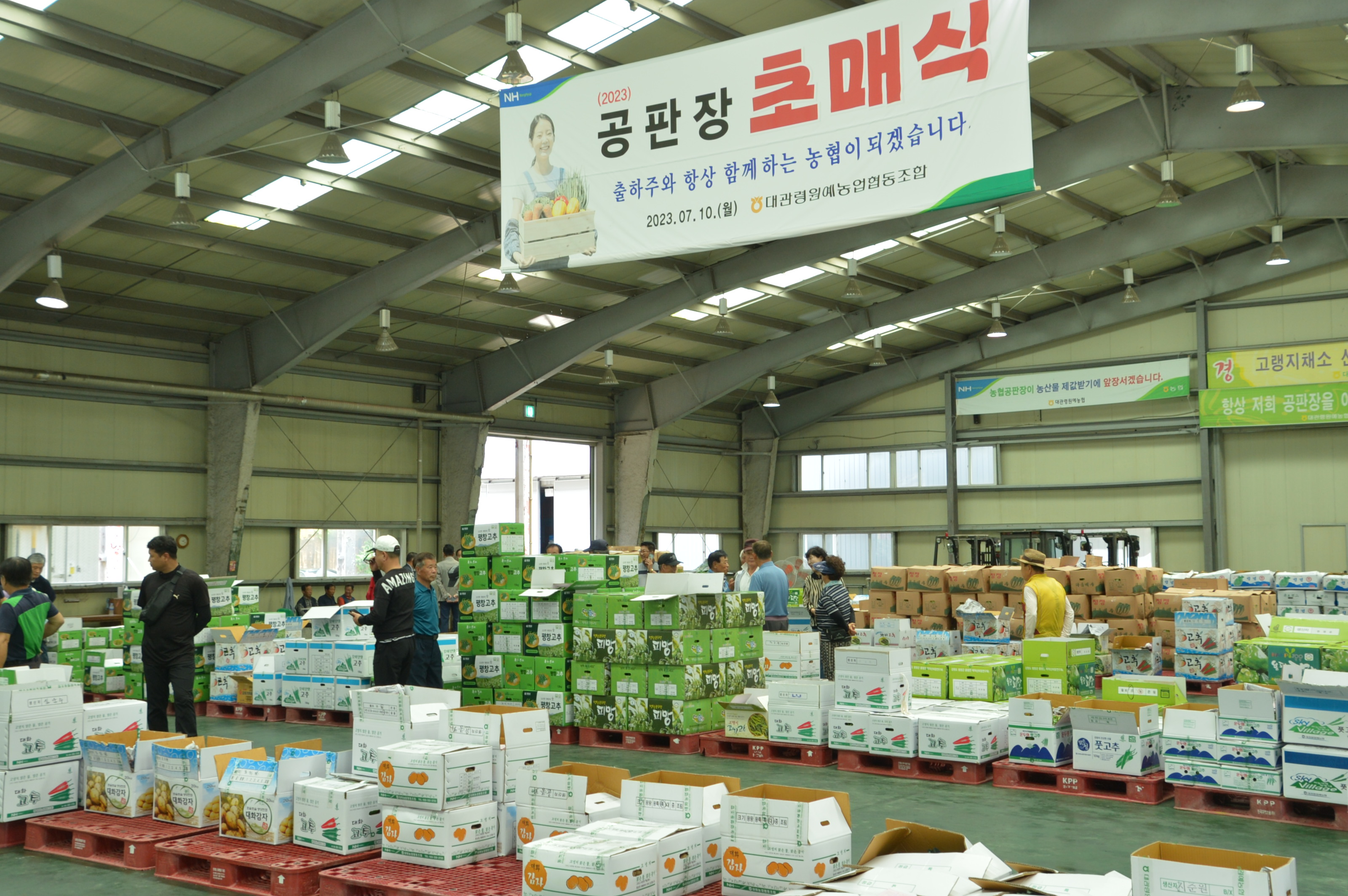 대관령원예농협(조합장 이준연)은 7월 10일(월) 용평면 이목정리에 위치한 공판사업소에서 고랭지 채소의 본격 출하철을 맞아 개장식을 개최하고 올해 첫 고랭지 농산물의 공판을 시작하였다.