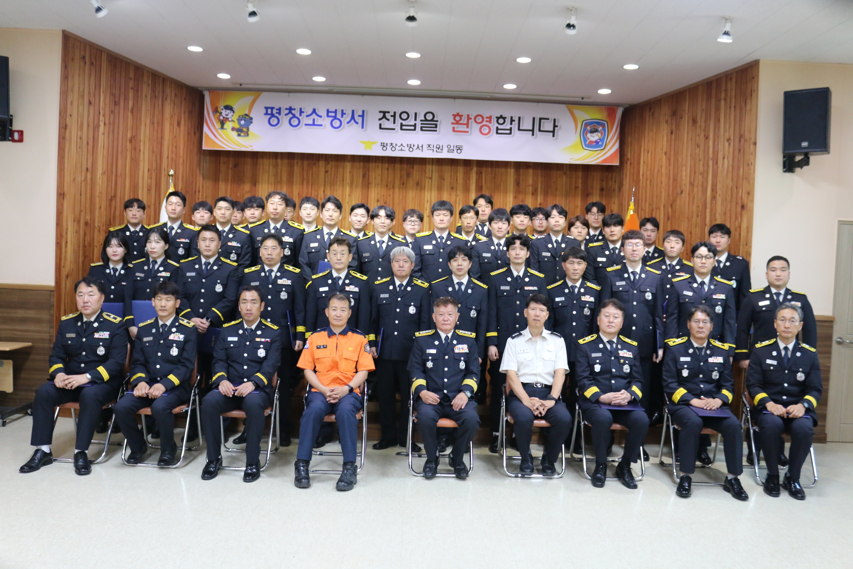 이날 수여식은 평창소방서로 전입한 33명과 자체 인사발령 대상자 18명에 대한 임용장 수여, 환영인사, 기념촬영 순으로 진행됐다.