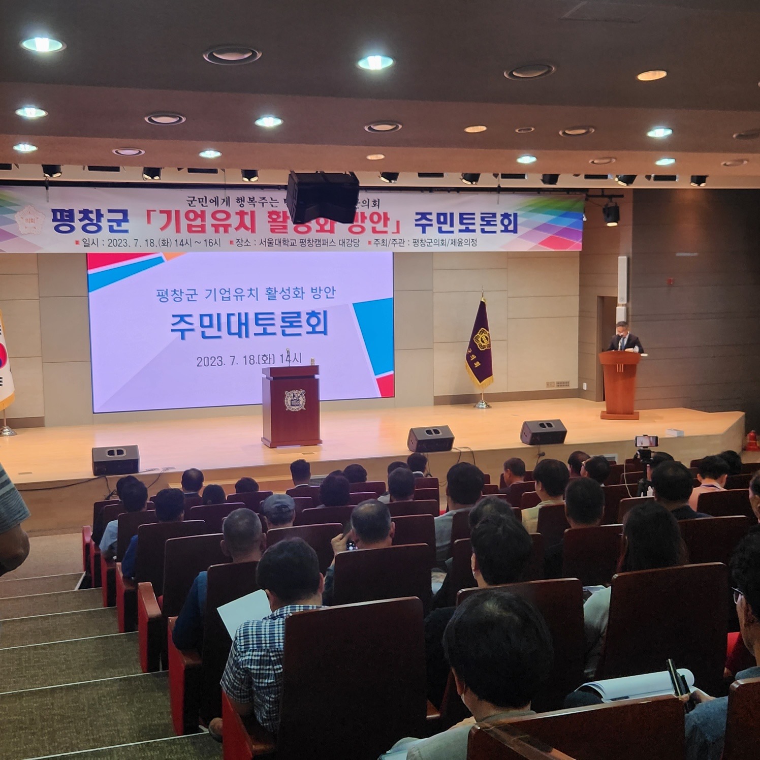 평창군의회는 오늘(18) 14시 서울대학교 평창캠퍼스 대강당에서 평창군 기업유치 활성화 방안 주민대토론회를 개최했다.