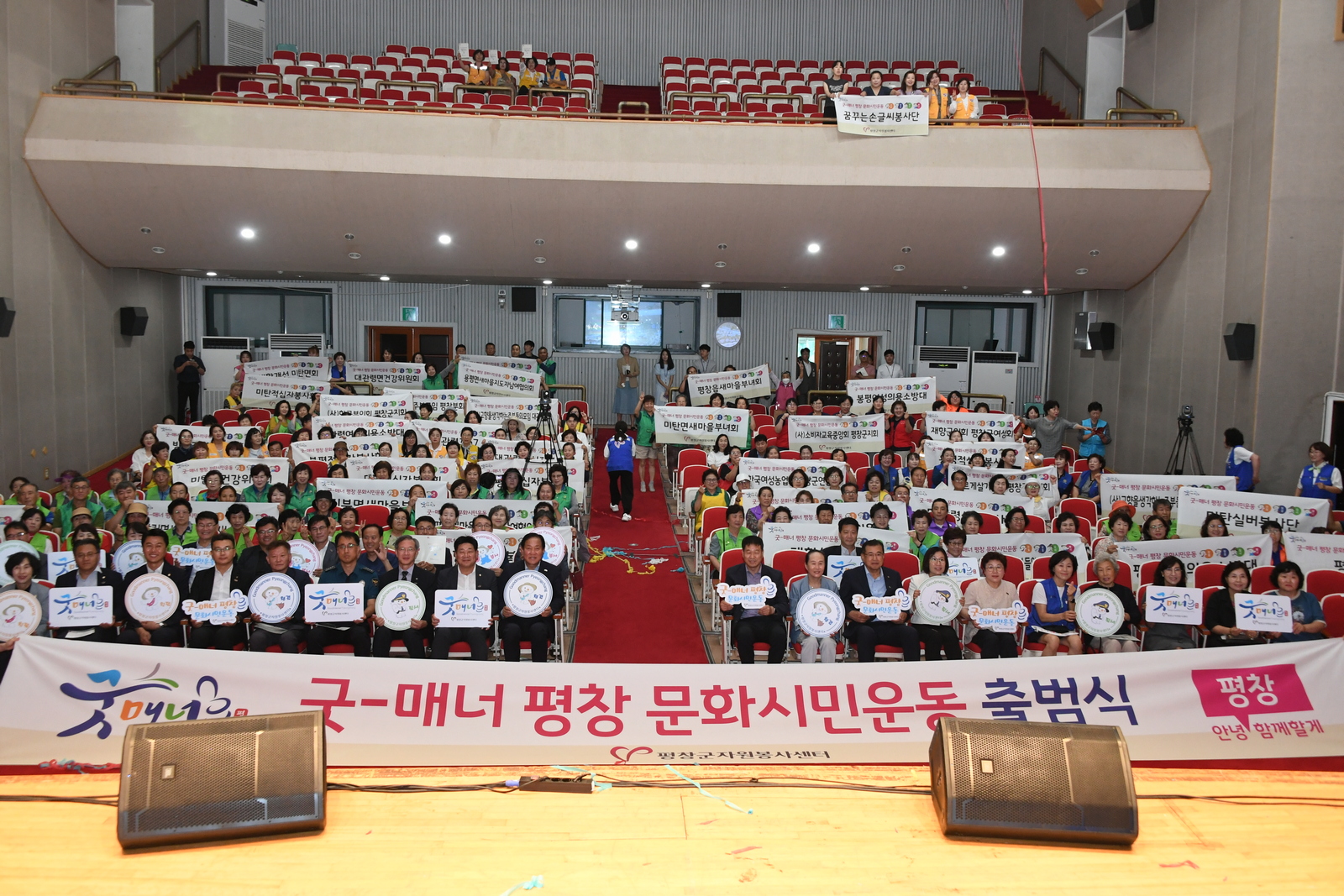 평창군 자원봉사센터(센터장 고홍재)는 7. 19.(수) 14시 평창군 문화예술회관에서 초청 인사 및 평창군 자원봉사자 300여 명이 참석한 가운데‘굿-매너 평창 문화시민운동 출범식’을 개최했다.