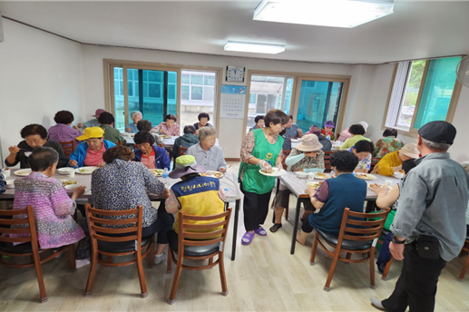 (7.18.), 진부면새마을부녀회(회장 박숙희) 회원 10여 명은 송정4리 마을회관에서 찾아가는 장수식당을 운영하여 어르신 50명에 삼계탕을 대접했다.