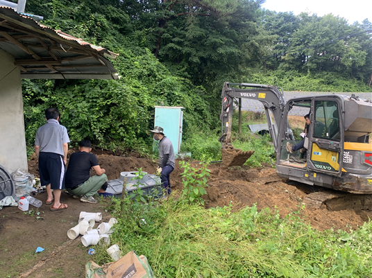 (7.19.) 10:00, 평창장애인자립지원위원회(위원장 이범연)는 장마철 토사로 어려움을 겪고 있는 발달장애인 가정의 정화조 교체와 집주변 환경 개선으로 집수리 봉사활동을 진행했다.