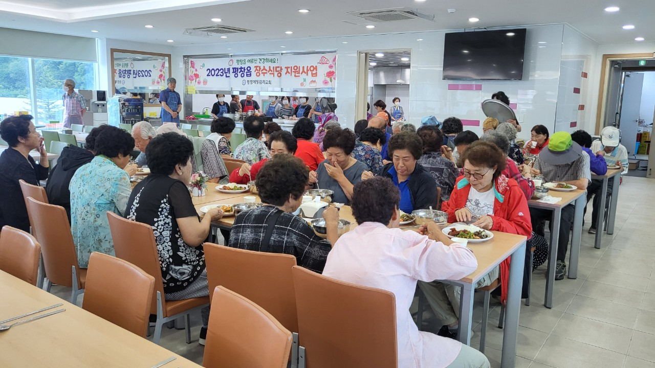 (7.17.) 12:00, 용평면적십자봉사회(회장 김동숙)는 금송회관에서 장수식당을 운영하여 지역 어르신 100분께 점심식사를 대접했다.